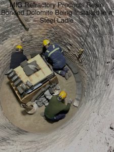 Ladle: A “bucket” lined with refractory (heat resistant) bricks, used to transport molten steel from process to process in a steel plant. (1)